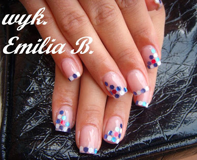 Zrobiony na długich naturalkach (połowa się niestety połamała). Pazurki troszkę problematyczne bo rosnące w łuku ku górze. Ale co tam-dałyśmy radę i oto efekt :)